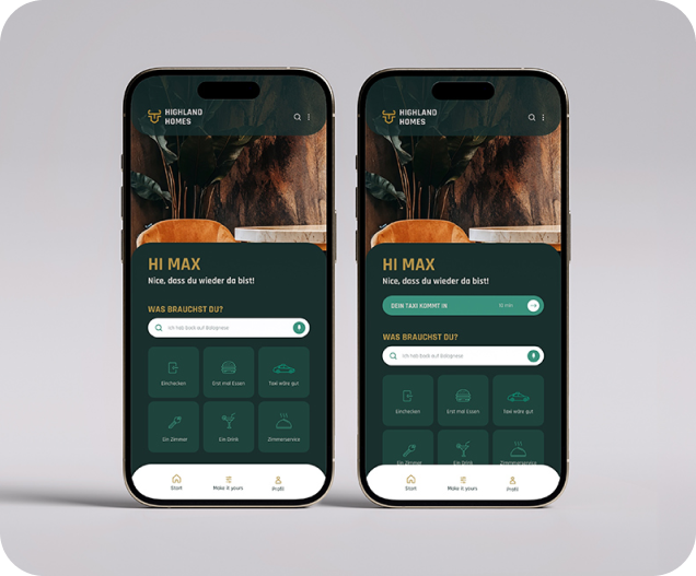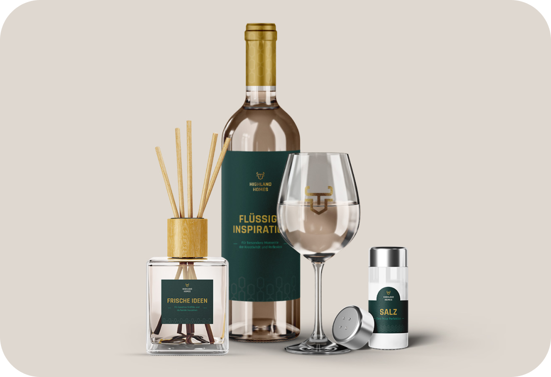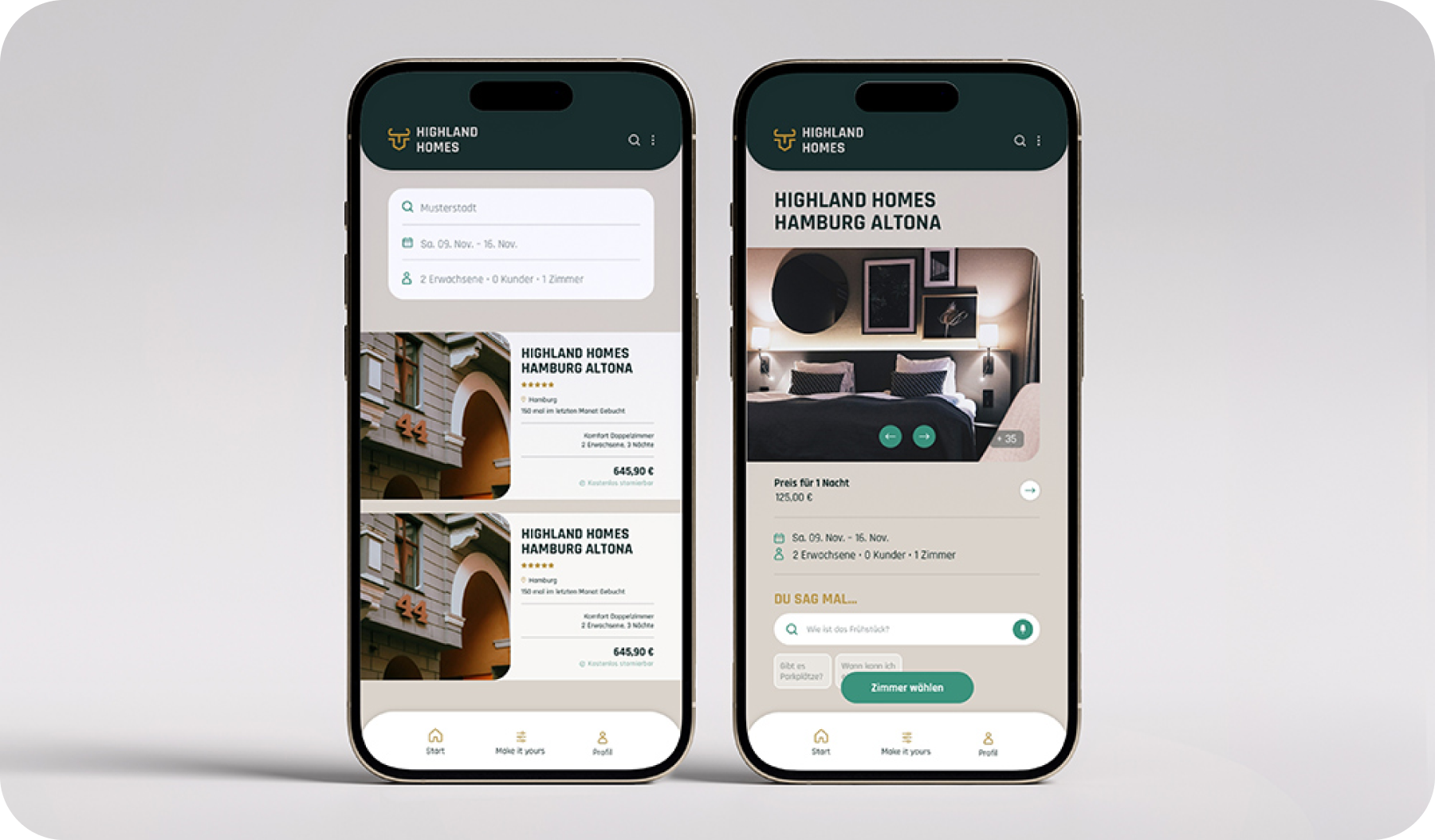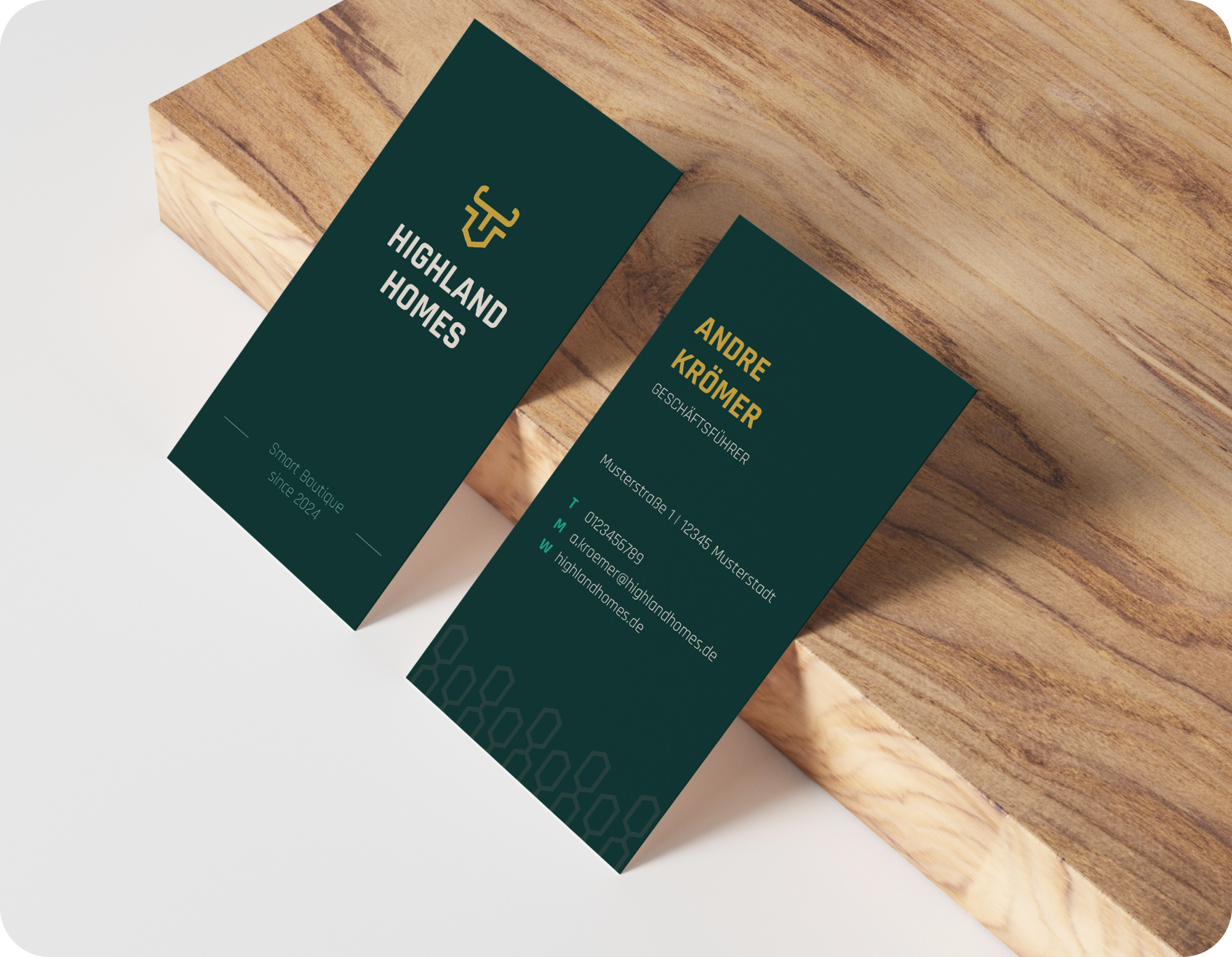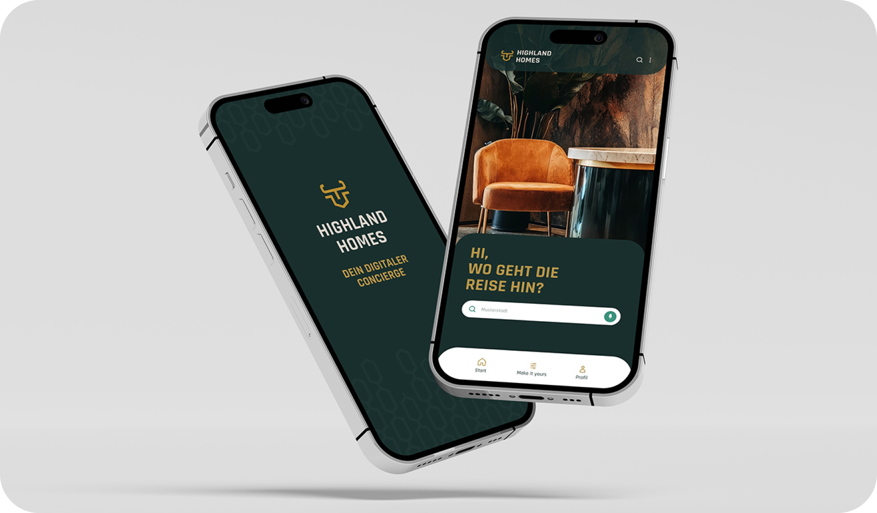 Von Grund auf neu – für Highland Homes entwickelten wir Logo, Farben, Typografie und Interieur. Warme Erdtöne treffen auf klares Türkis und schaffen eine ruhige Atmosphäre mit innovativer Dynamik. Nachhaltige Materialien runden das Konzept stimmig ab.