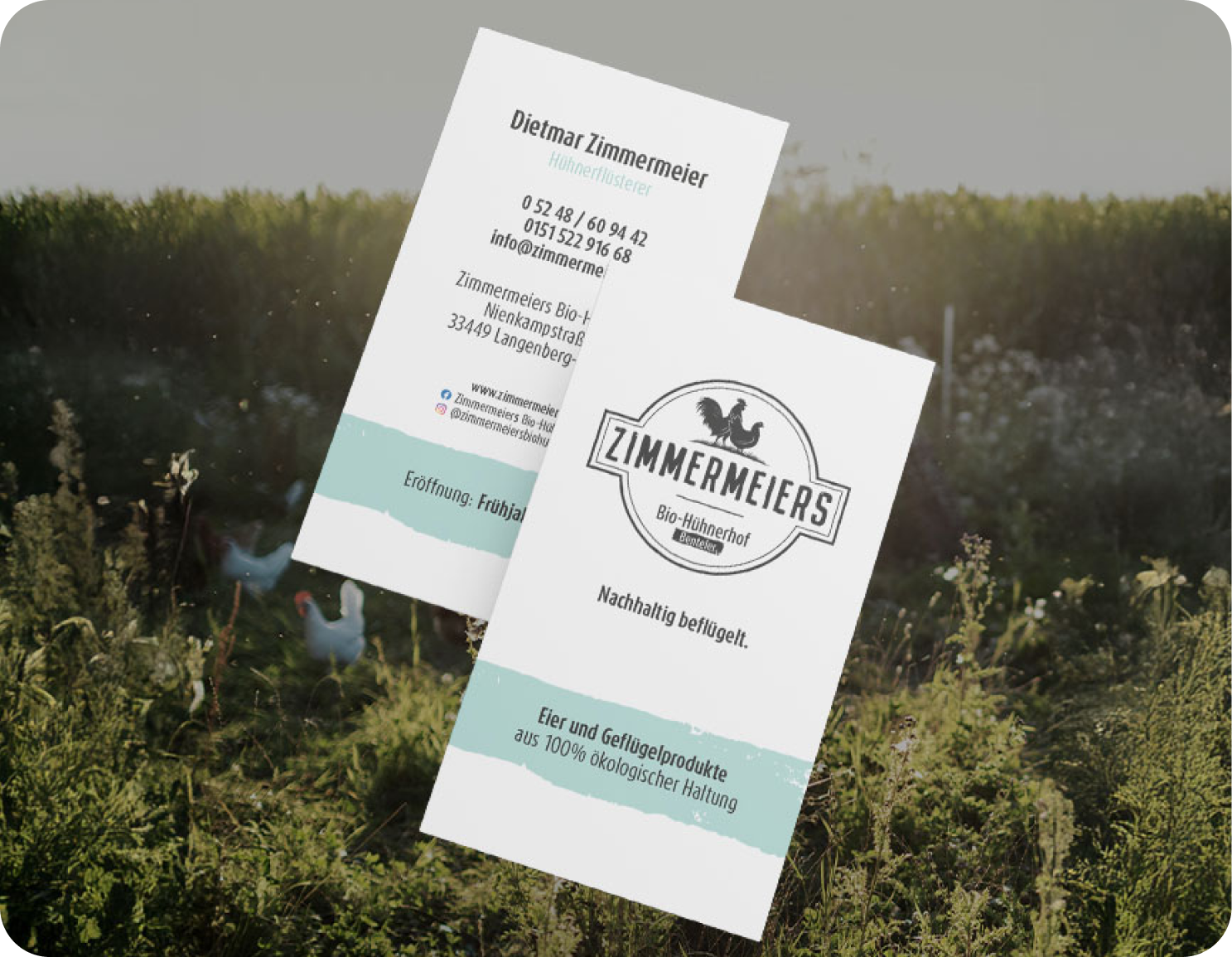 Ein wichtiger Bestandteil der Zusammenarbeit mit Zimmermeiers war das Branding. Wir haben das Corporate Design des Hühnerhofs komplett neu gedacht und finden, das Ergebnis spricht für sich.
