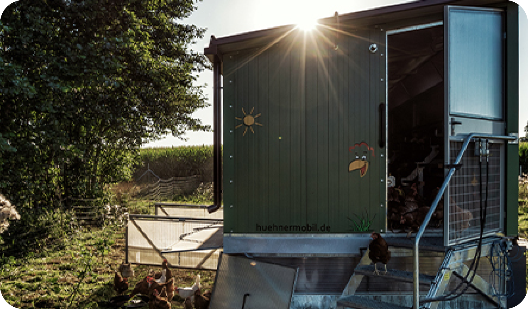 Darüber hinaus haben wir Zimmermeiers mit professionellen Fotos unterstützt. Neben den zahlreichen Chicks, konnten wir auch den Inhaber und das Hühnermobil des Hühnerhofs ablichten.